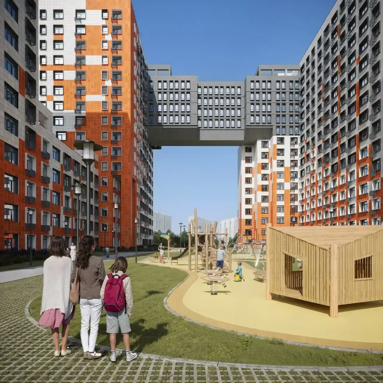 Для нашего заказчика одной из важных задач было создание яркого проекта, чья архитектура будет привлекать внимание и украсит городскую среду Красноярска. Архитекторы «Миторры» предложили необычный для жилых проектов элемент – эффектный 4х-уровневый «мост», соединяющий два корпуса на уровне 12-16 этажей. Такое решение не только делает жилой комплекс заметным, но и увеличивает его полезную площадь, повышая эффективность проекта.